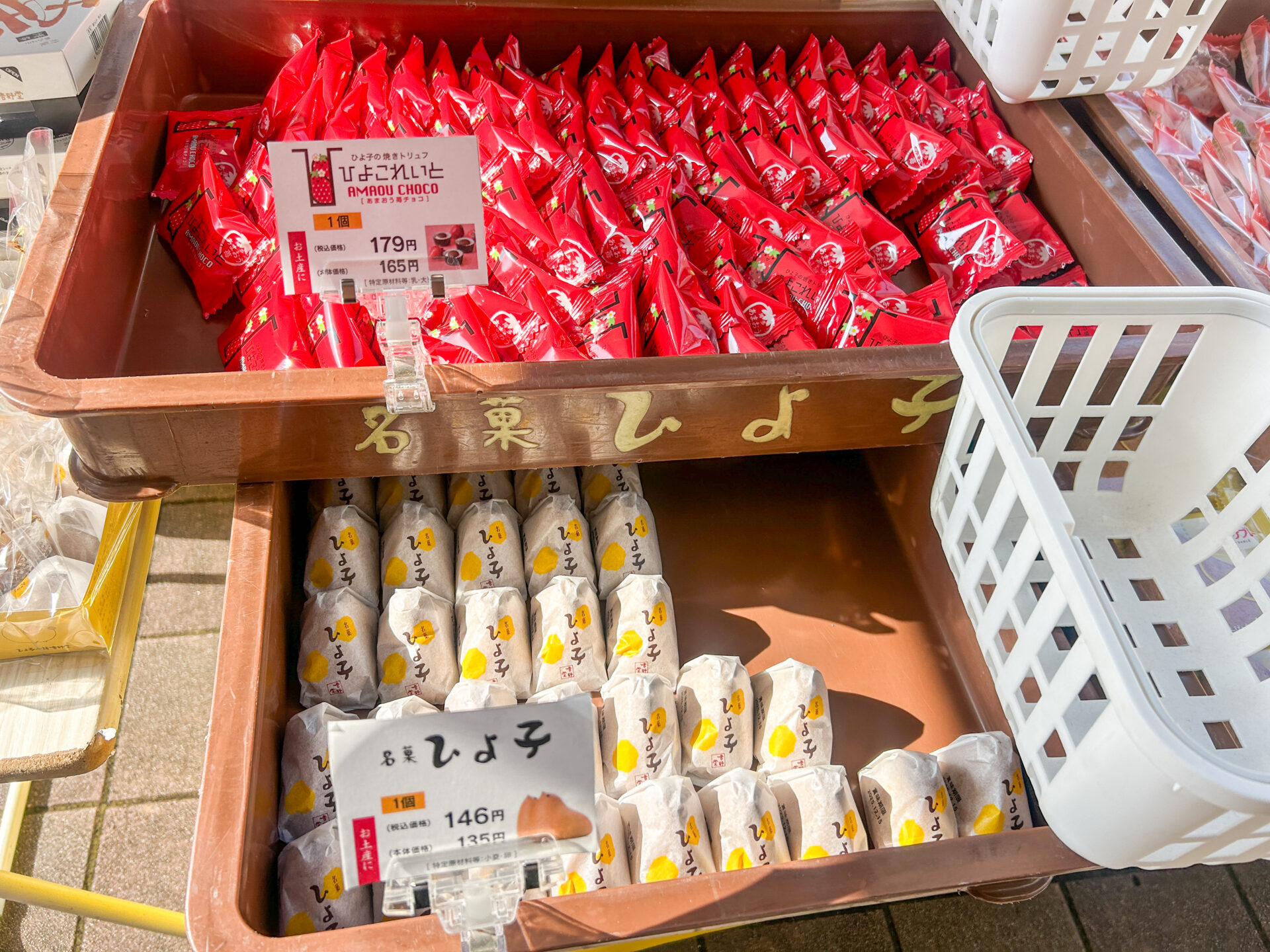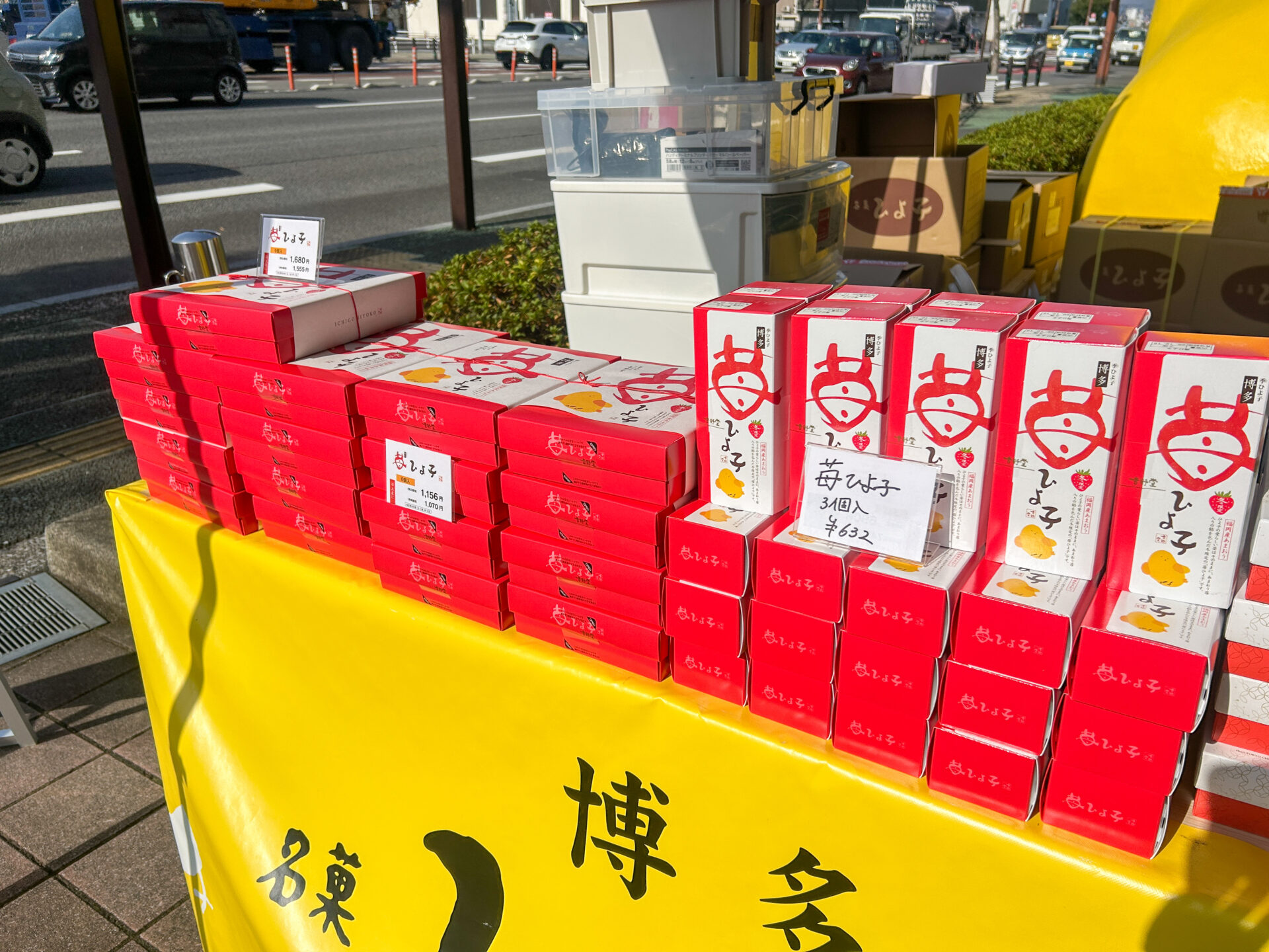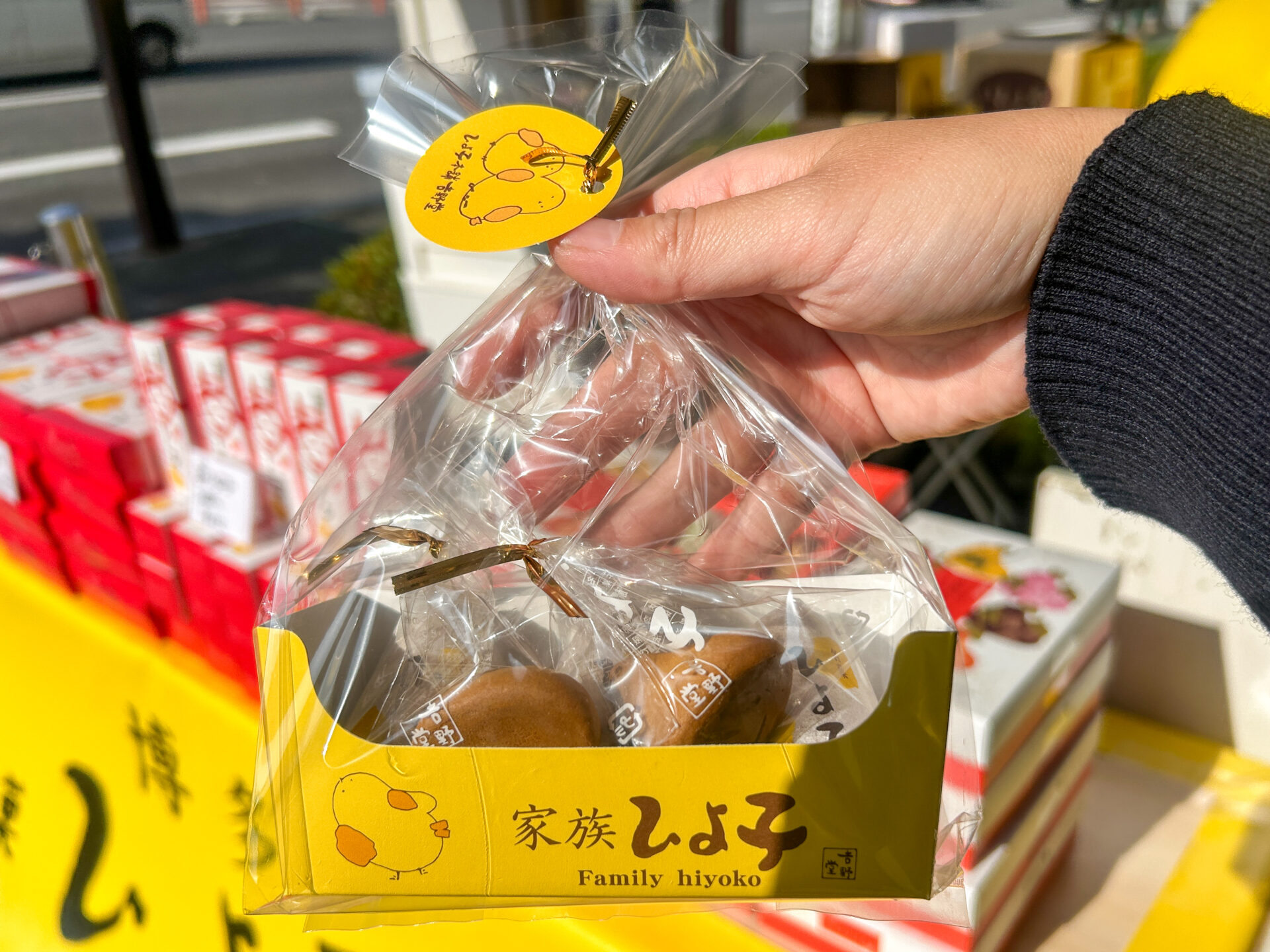 『幸せを運ぶ♪はっぴよカー』で販売されている商品は、主に『ひよ子本舗吉野堂』の人気商品のバラ売りです。