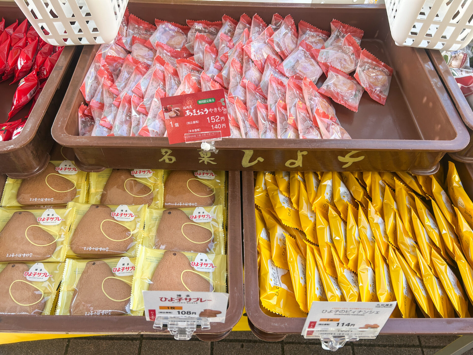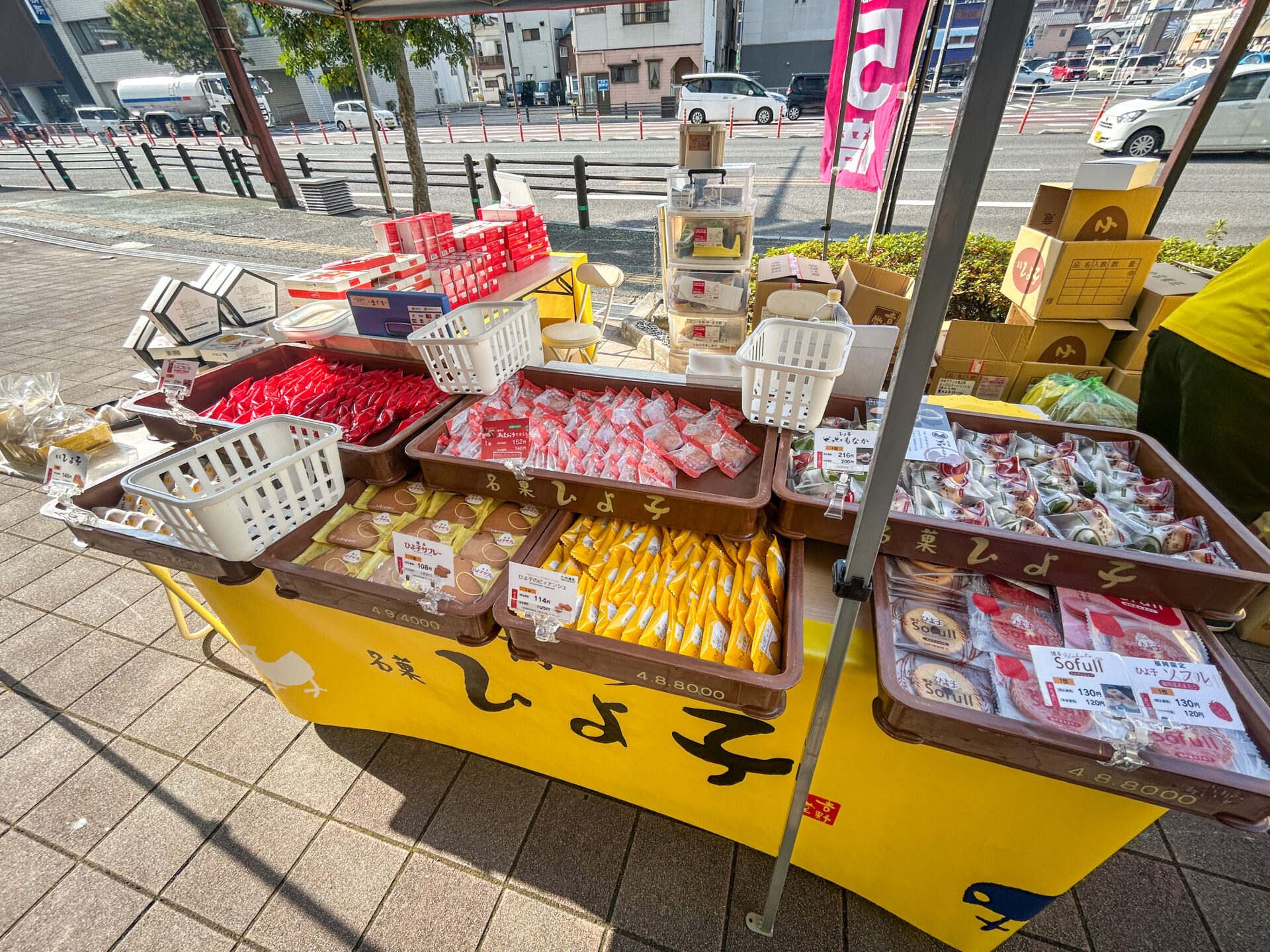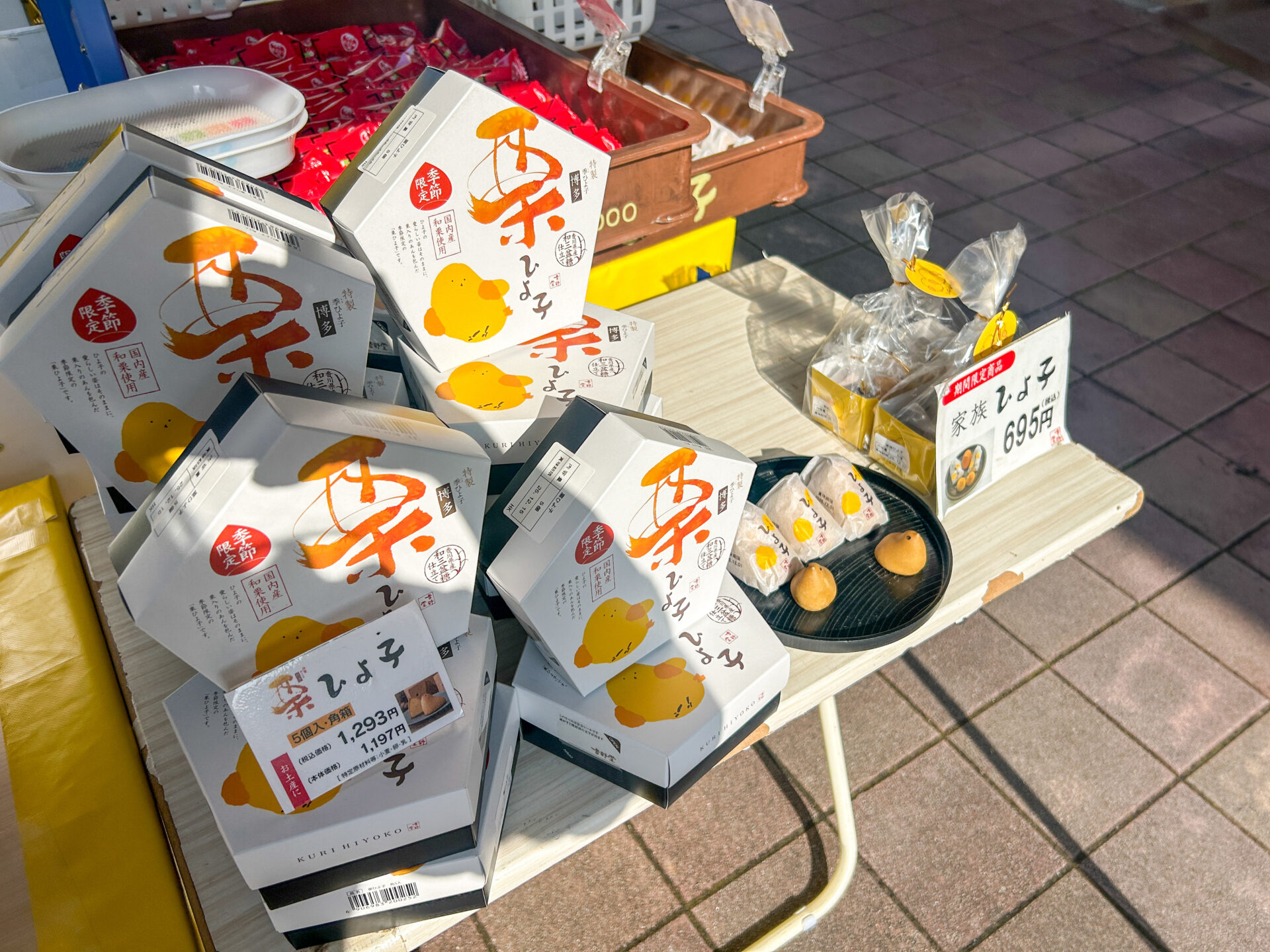 『幸せを運ぶ♪はっぴよカー』で販売されている商品は、主に『ひよ子本舗吉野堂』の人気商品のバラ売りです。