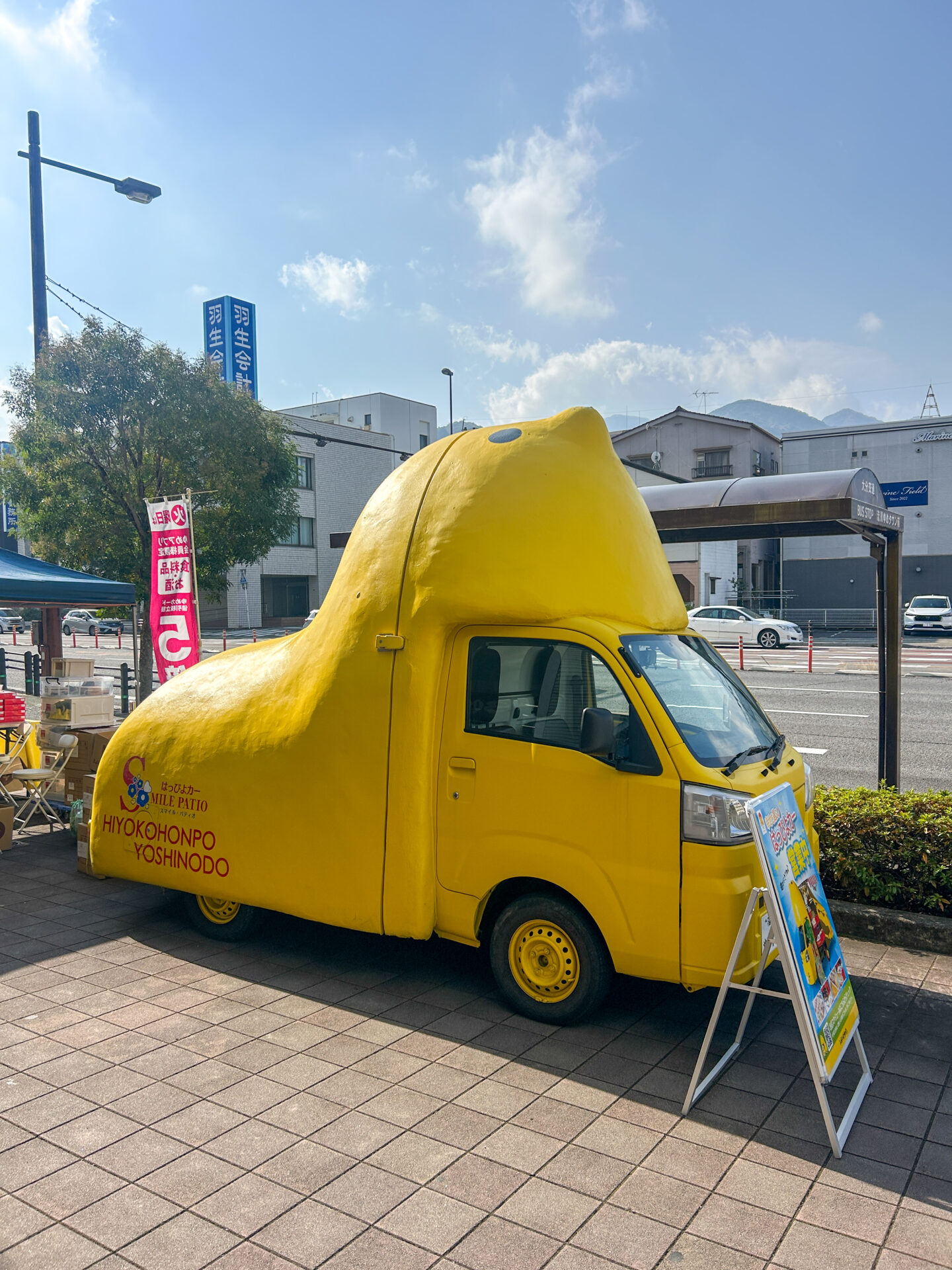 幸せを運ぶ♪はっぴよカー!ゆめタウン別府にひよ子本舗吉野堂の移動販売車が来ています