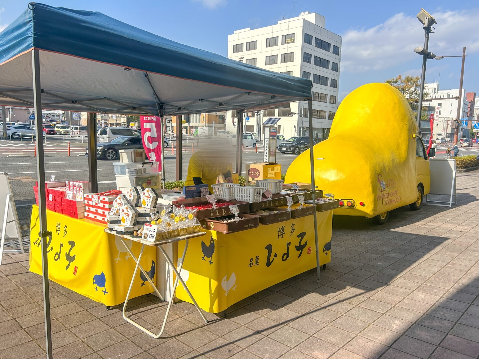 普段は福岡県内を中心に、ショッピングセンターや高速道路SA・PA、道の駅、他にも様々な場所へ出向いてひよ子本舗吉野堂の商品を販売しています。