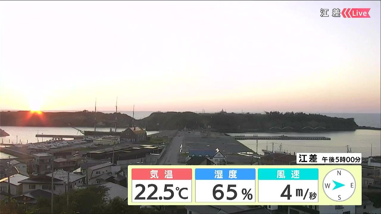 江差のきょう3日(金)の日の入りは午後5時18分。あす4日(土)も日ざしが暑く感じそうです。