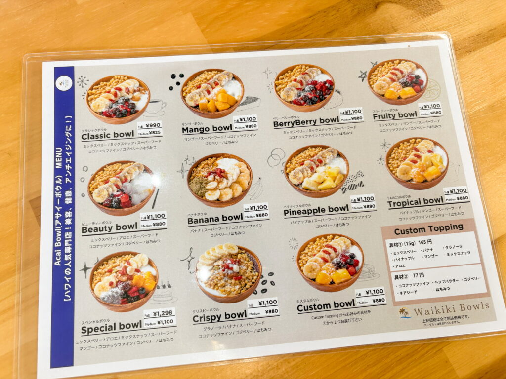 アサイーボウルメニュー