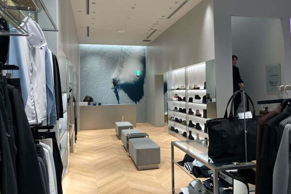 店舗の特長については、デサントリテール部・部長の島健太郎さんが紹介してくれました。店舗は「デサント」の全カテゴリーを取り扱う2階建てで、1階にはスキーやゴルフなどのアスリートも着用するパフォーマンスウェアが並んでいます。