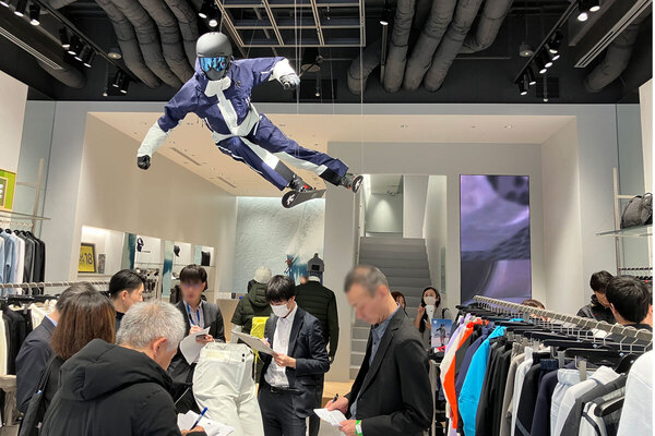 島さんは「スキーのマネキンを吊りこんでいるのですが、この店舗が初めての試みです」と言い、店内の空間から躍動感が伝わってきました。