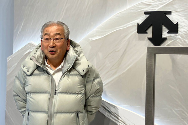 デサント代表取締役社長・小関秀一さんは最新の水沢ダウンを着用