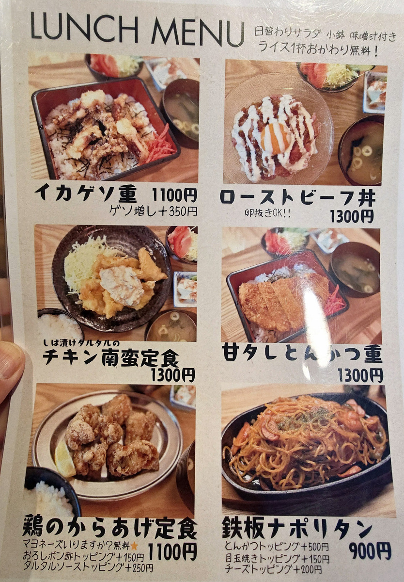 ランチのメニューはこちら。