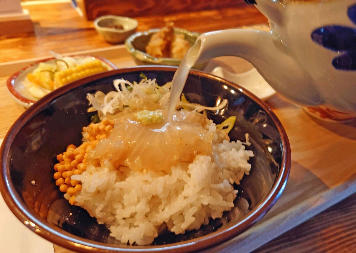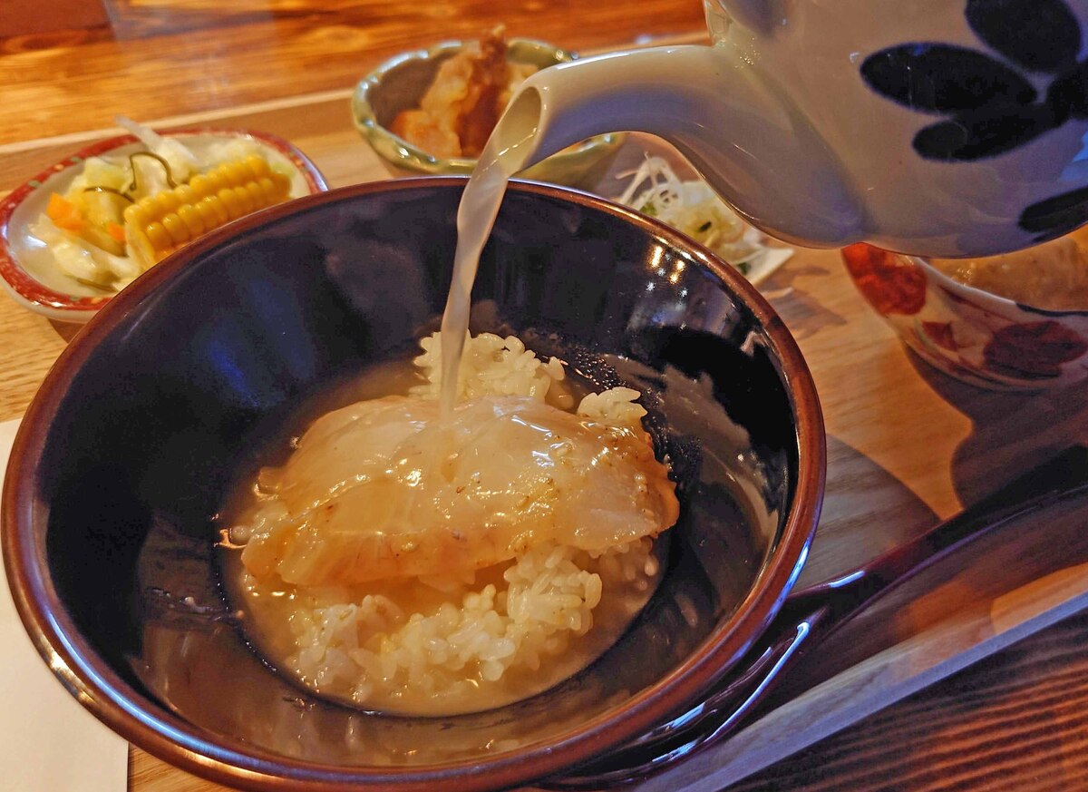 次はお出汁をかけて茶漬け。