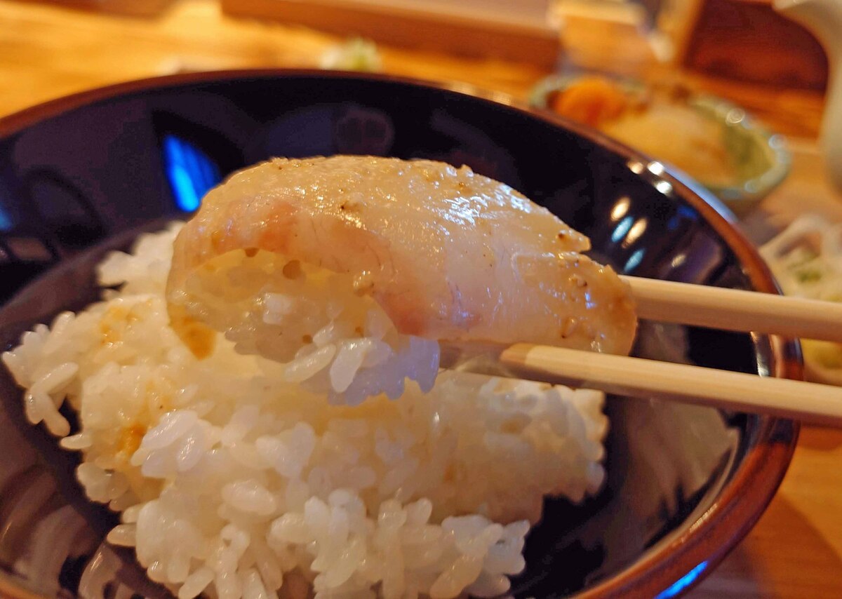 ゴマの風味と白身の淡白さがいい、ご飯に合うねぇ。