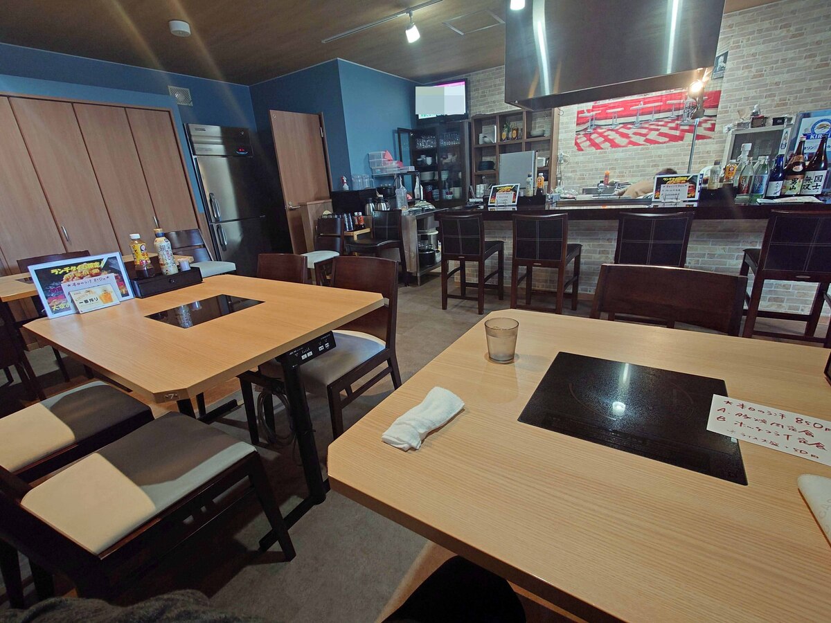 カウンター席が二か所あって、テーブル席と奥には小上がりがありますね。