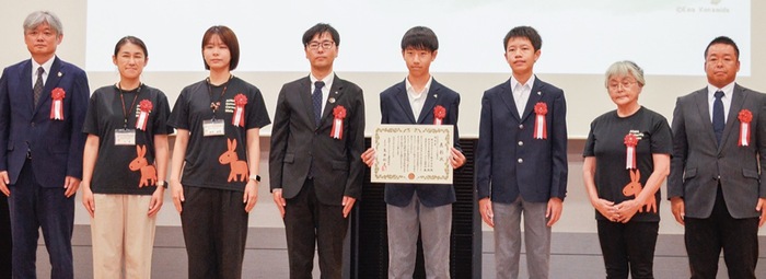 表彰式には、関係者ら14人が出席。賞状を受け取った生徒会会長の井戸本環太さん(3年)は、「成果が出てうれしい。生徒それぞれが学びを得てくれて、生徒会としてもやりがいがあった」と笑顔を見せた。同副会長の江口泰志さん(3年)は「自分たちにもできることがあると知った。これを機に、地域に活動が広がってほしい」と話していた。