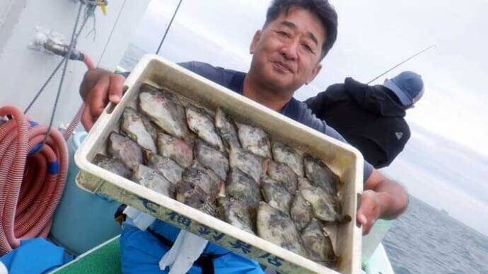 三重県鳥羽市石鏡漁港のフィッシュハンターでは、21日にタイラバでマダイが大爆釣。40cm級を頭に船中28匹をゲット。ほかにガンゾウビラメ多数や良型ホウボウなどお土産多彩に。10日には6.25kgの特大トラフグや大ダイも上がった。