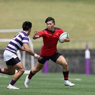 第1戦のS東京ベイ戦。釜石は加入2~3年目の選手を中心に先発した。前半はS東京ベイが先制。釜石は自陣でのプレーが続くが、要所でいいディフェンスも見せ、相手の前進を食い止めた。20分、フランカー、アンガス・フレッチャーがハイパントのこぼれ球を蹴り出しチャンスを作ると、SO落和史が素早く拾って独走トライ(ゴール失敗)。その後、2本のトライを決められ、5-21と引き離された。34分、今季新加入のSH岡新之助タフォキタウがラックサイドを突いて前に出ると、フォローしていたプロップ松山青につなぎ、釜石2本目のトライ。落のキックは惜しくもゴールポストに当たり、追加点はならず。10-21で折り返した。