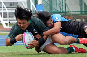 今年初めて創設されたラグビーの新大会「ジャパンラグビー リーグワン ライジング」に参加する2部の日本製鉄釜石シーウェイブス(SW)は9月27日、釜石鵜住居復興スタジアムで、昨季1部2位のクボタスピアーズ船橋・東京ベイと対戦した。同大会は、若手選手や公式戦出場回数が少ない選手の成長、新たな有望選手の発掘などを目的に開催される。10月4日には昨季2部3位のNECグリーンロケッツ東葛と2戦目を戦った。釜石SWにとっては格上チームとの貴重な対戦機会にもなり、課題を修正しながら今季のチームづくりを進める。