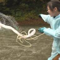 イベントの最初は『稚魚の放流』。開始前から大勢の列ができるほどの人気プログラムです。