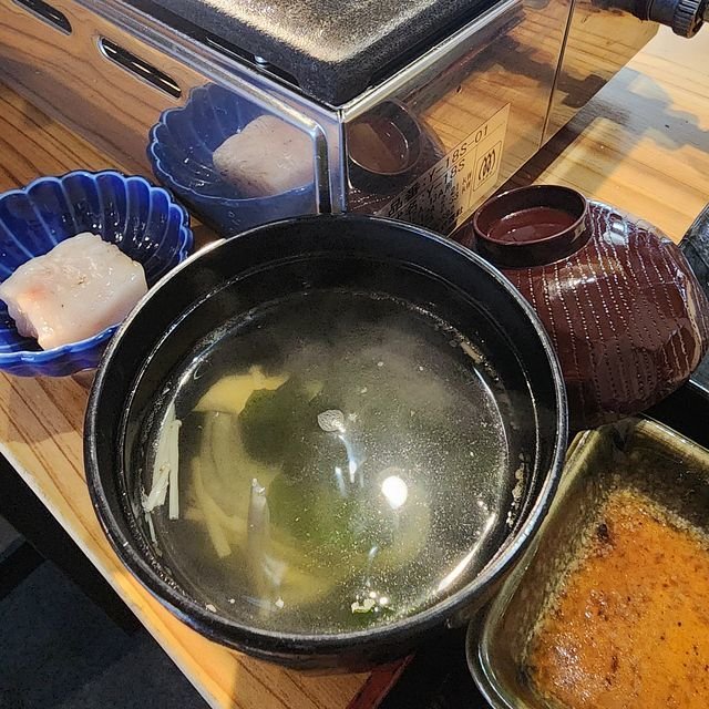で、先に私注文の「近江牛焼肉定食」が登場。これにあと、ワカメスープが付いてきます。