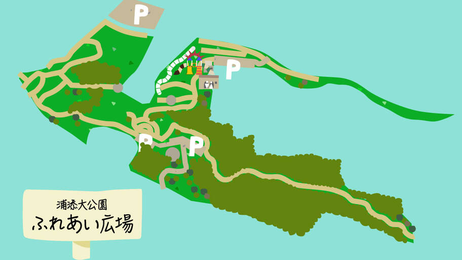 駐車場に着くや否や、公園中央のカラフルな遊具に釘付けの子供達。「もう行ってきていい?!」と待ちきれない様子。