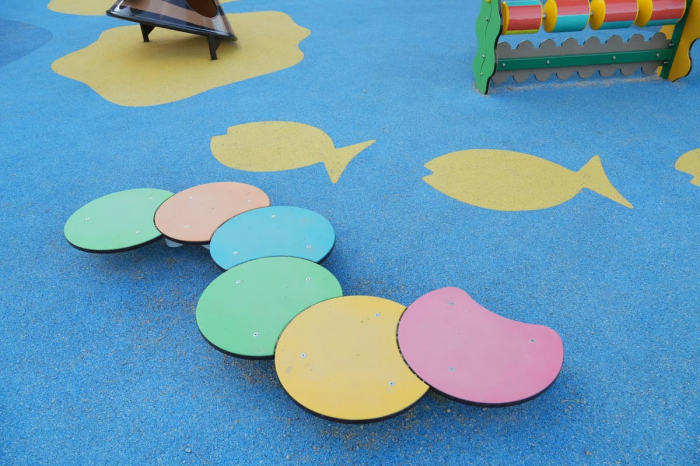 まだヨチヨチ歩きの小さなお子さんには、乳児用遊具がおすすめです。こちらは、水辺をイメージしたデザインで、中を歩くと柔らかくフワフワした感触。小さなお子さんも安心の造りとなっています。
