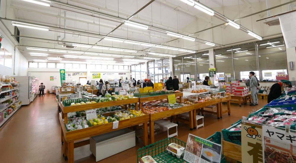 ミカン以外にも、約600人の出荷者から届けられる新鮮な野菜などが店内に。いろんな自然の恵みを手に入れましょう!