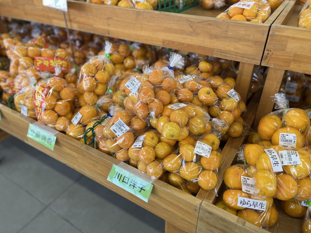 農家のみなさんが育てた「有田みかん」が並んでいます。1袋ワンコイン(500円)以下で販売されているものが多数。品質に変わりがない“キズあり”と書かれた袋なら、200円台のものも。