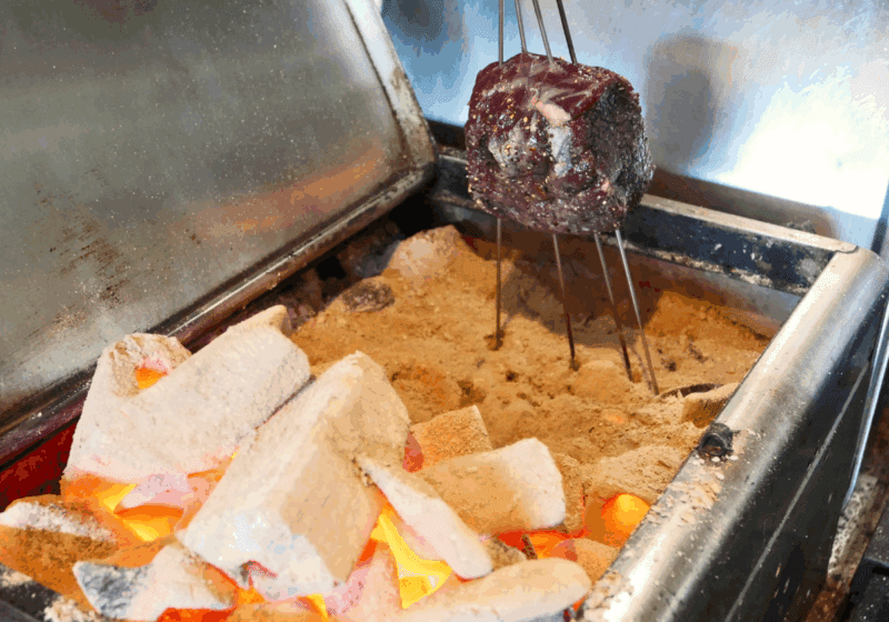 ジビエ料理はいろいろと口にしてきたものの、初めての組み合わせに期待しながらいただくと、じゅわ〜とみずみずしい焼きなすに、ほんのり残る山菜や野草の苦味と程よい食感が、シカ肉とベストマッチ。炭火でじっくりと焼いたロース肉は、きめ細かで歯切れ良く、上品な旨味が楽しめます。