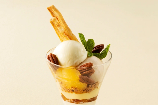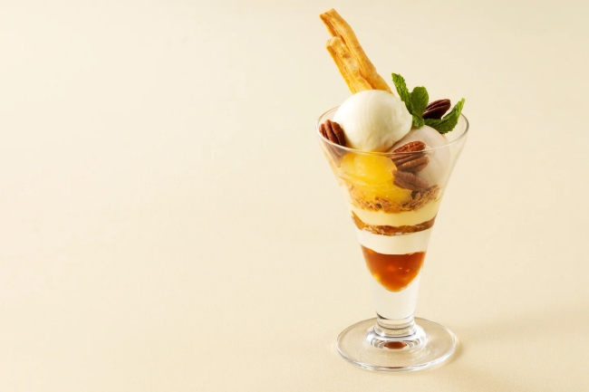 その紅茶を使ったメニューとして、一口食べただけでふわっと紅茶の香りが広がるロールケーキやムース、紅茶の風味にぴったりのりんごを組み合わせたパフェも。
