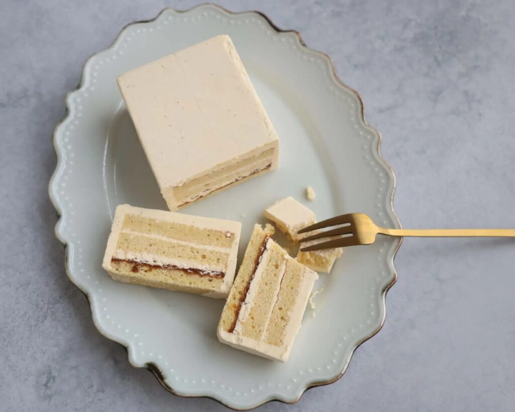 マンデル生地とバタークリームを重ねた中央には、キャラメルソースを忍ばせ、コクと甘みのバランスを引き立てます。