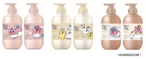 今回のコラボレーションでは、人気クリエイター『可哀想に!』さんが描く『おぱんちゅうさぎ』や『んぽちゃむ』、『きみまろ』が『ビオリス』を使ってバスタイムを楽しむユーモラスな世界観が表現されています。