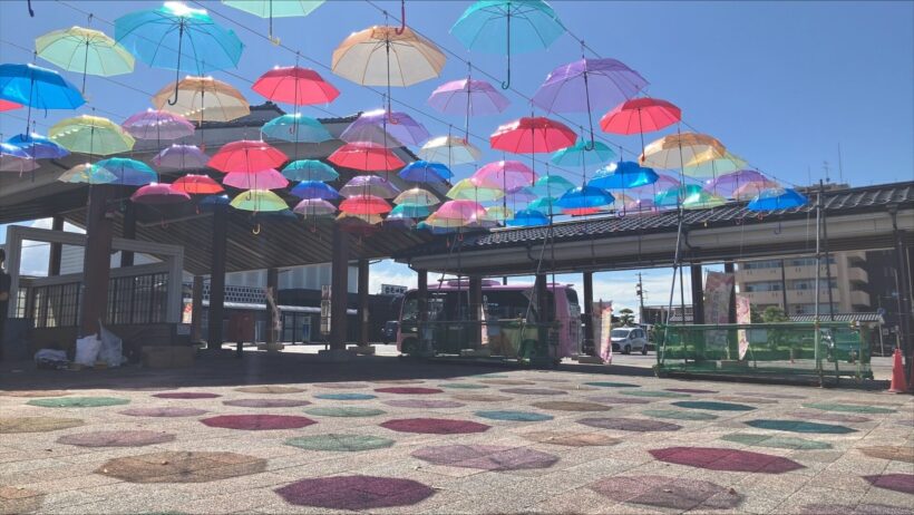 イベントは新潟職業能力開発短期大学校の学生が企画、設計、運営を行う社会実装型の取り組み。駅前空間にカラフルな傘が彩るアンブレラスカイ(10月1日~7日展示)やマルシェ、キッチンカーなどを設置し、普段使われていない駅前空間ににぎわいと居場所を創出する。