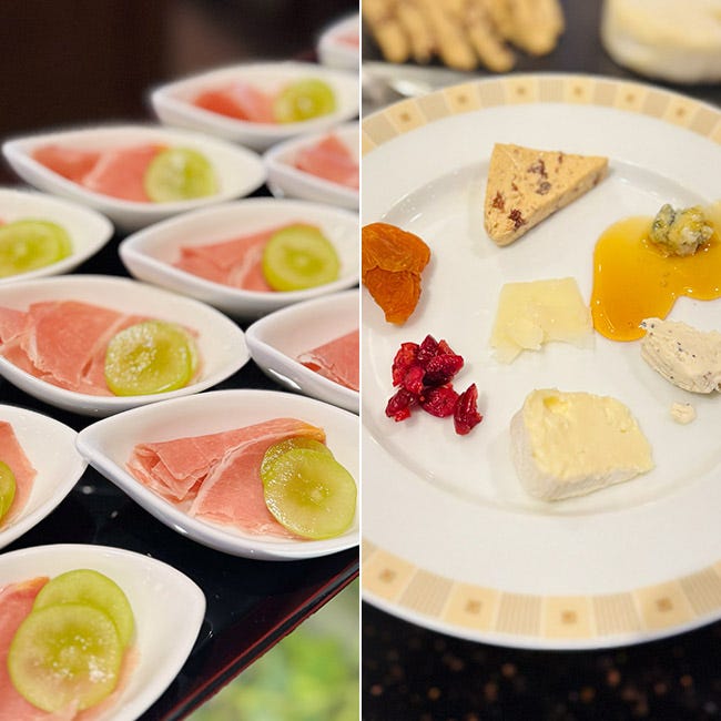 とってもリッチな組み合わせの「生ハムとフルーツ」。塩気と旨みあふれる生ハムに、シャインマスカットのフルーティな甘さが絶妙にマッチ。これは最高のおいしさ。