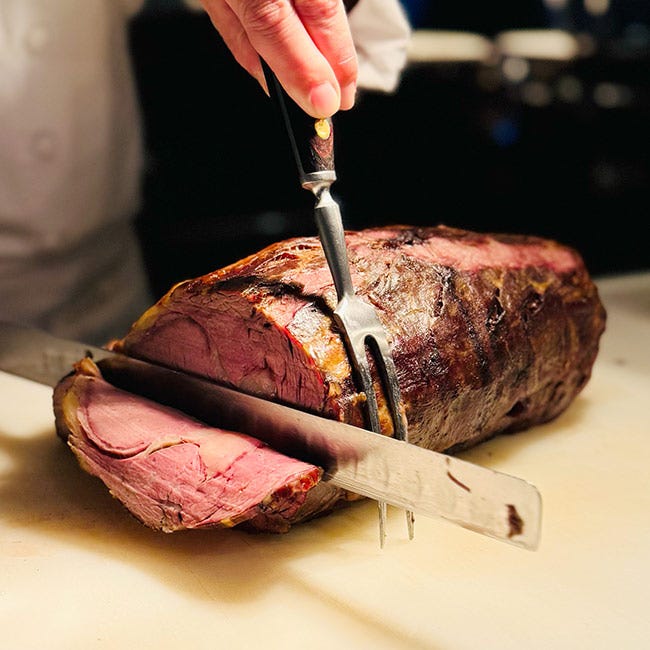 お待ちかねのコーナーにやってきました。そう、「ローストビーフ」です。このロゼ色の断面、本当においしそう。