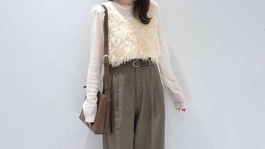 そこでおすすめしたいのが、長袖のトップスの上にベストを重ね着したコーデです!