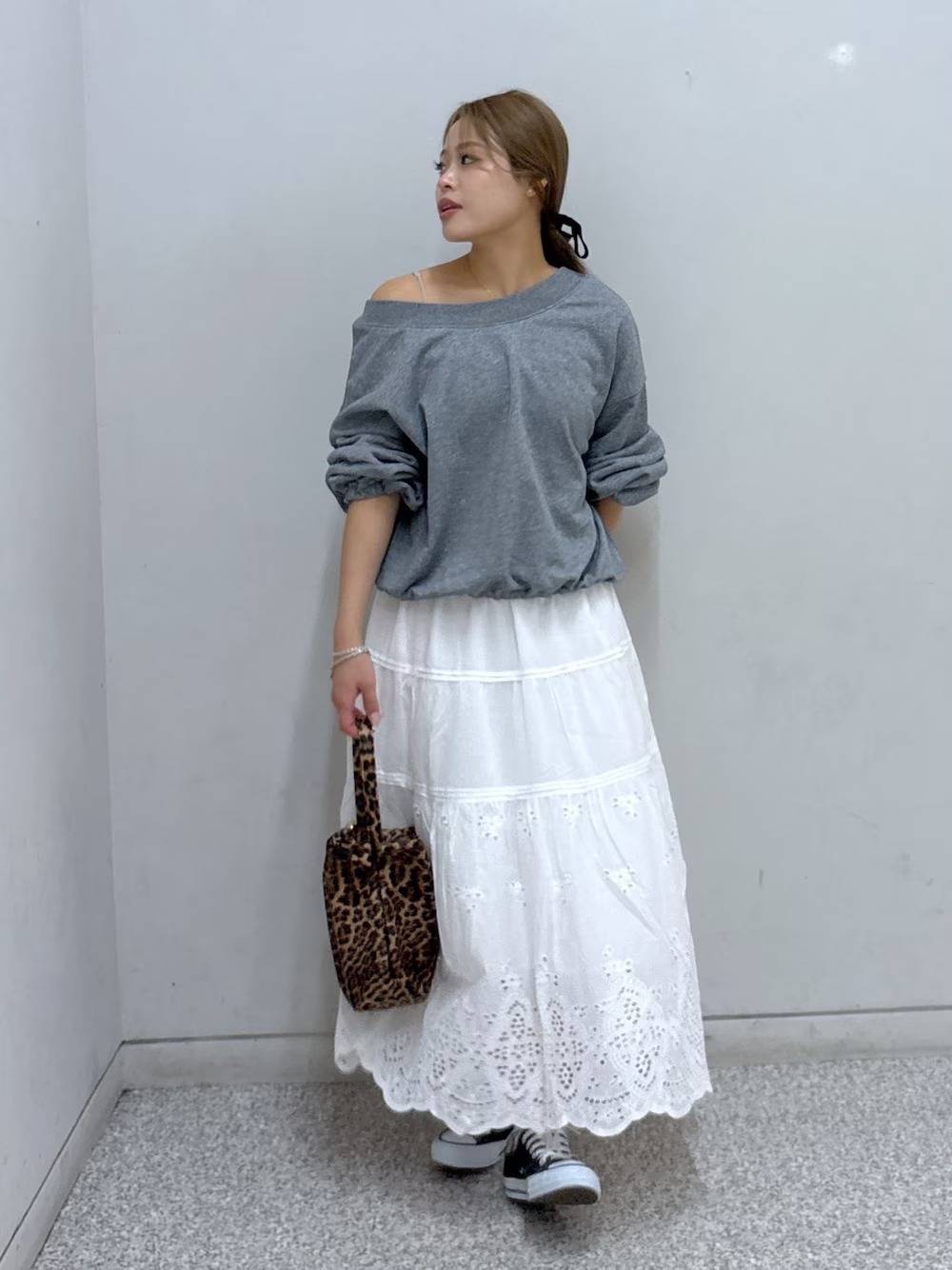 【10月編】老け見えしないスカートコーデ②ワンショルトップス×エンブロイダリースカート