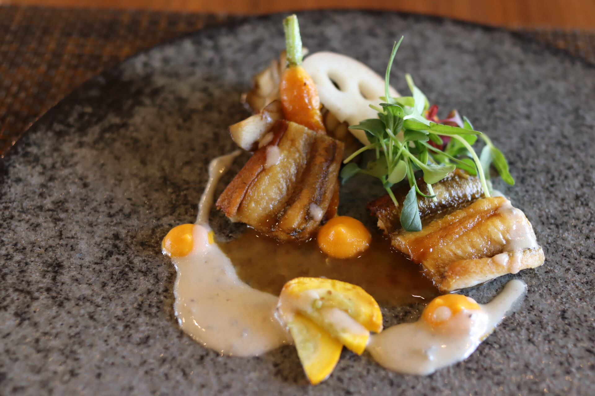 グレーを基調とした上品な店内とテラス席からは、裏通りの落ち着いた景色も楽しめ、記念日や特別な食事にもぴったり。子ども連れにも柔軟に対応してくれるので、家族でゆっくりコース料理を味わいたいときにもおすすめです。