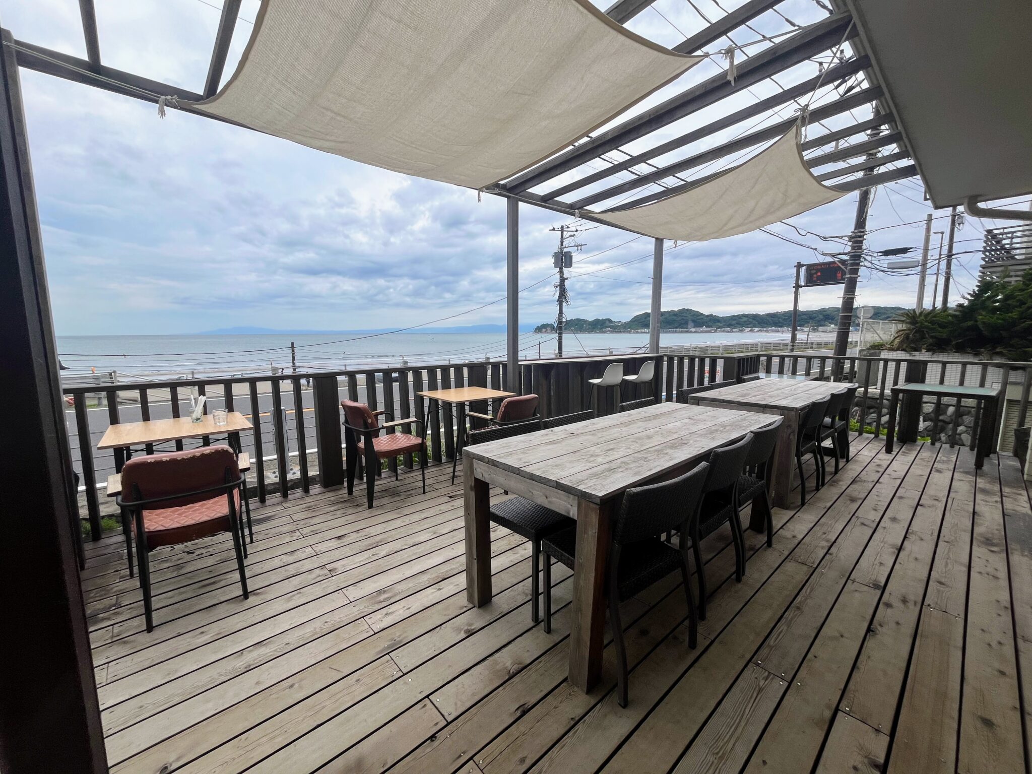 材木座海岸の目の前に建ち、どの席からも海を眺めながら過ごせる「DROP IN cafe(ドロップインカフェ)」。
