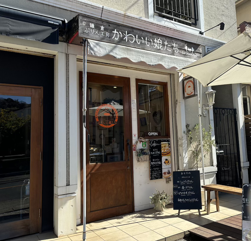 江ノ電・長谷駅から徒歩1分。木の温もりが感じられる可愛らしいプリン専門店「鎌倉ぷりん工房 かわいい娘たち ~La・Chou・Chou~」。