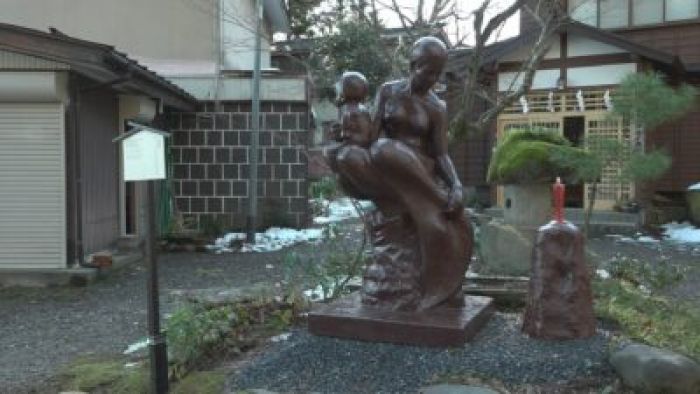 上越市出身の児童文学作家、小川未明とゆかりのある春日山神社で、未明がかつて使っていたとされる井戸と、劣化が進んでいた未明の代表作をモチーフにした人魚像が復元されました。