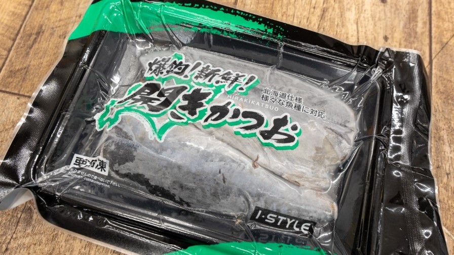 『開きかつお』は厚みのある身をそのまま開いたもので、投げ釣りやウキフカセで大きな身を使いたいときに向いています。