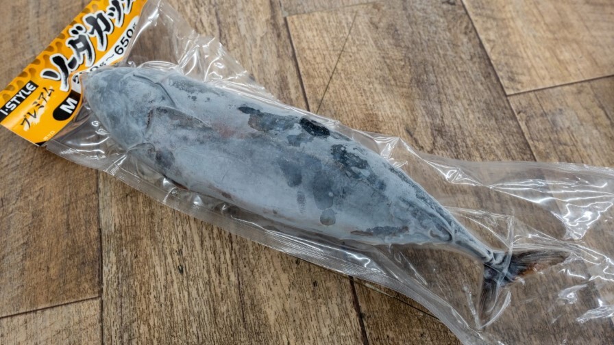 まず素の状態(一本もの)で販売されている『ソーダカツオ』は、好みの大きさに切ったり、形を整えたりできるのが利点です。
