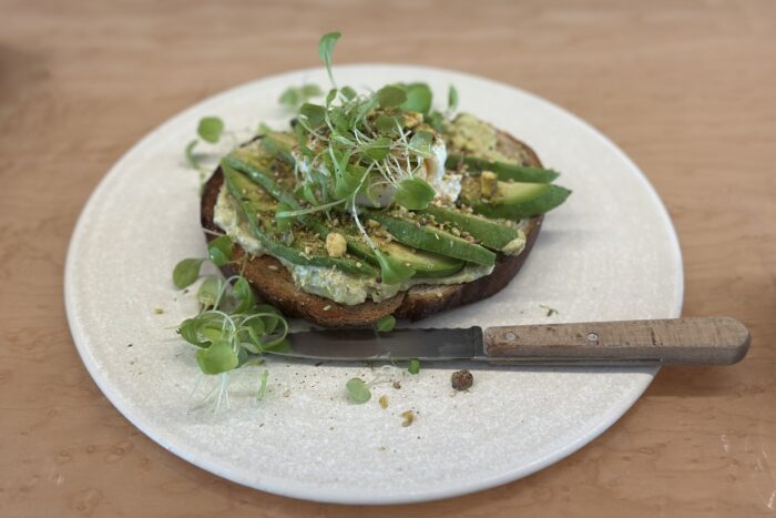 自家製パンは表面カリッと、中はしっとり。アボカドがたっぷりで、玉子と絡んでコクのある味わいに。スパイシーさが意外と合う。