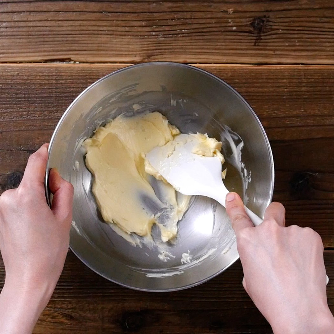 3: ボウルにバターを入れてなめらかになるまで混ぜます。