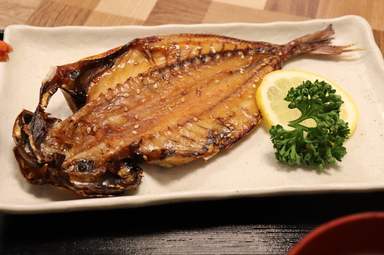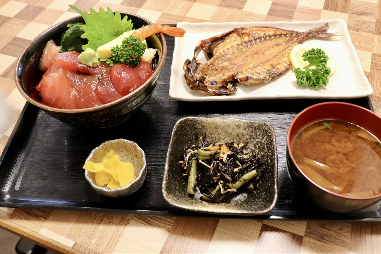この日はまぐろ漬け鉄火丼と鯵の開き焼きでした!