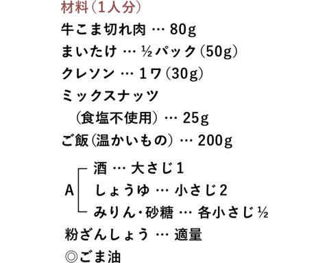 【ひとり分のデイリーごはん】まいたけと牛肉のさんしょうご飯