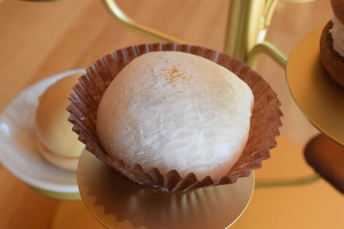 クリームチーズ餡とゆべしを細かく刻み、求肥で包んだゆべし大福はもっちりやさしい甘さ。求肥で少し和の要素がはいっていることに新鮮さを感じます。