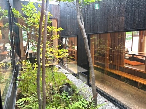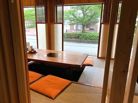 中庭の北側には、掘りごたつテーブル席があり、半個室のようになっていました。