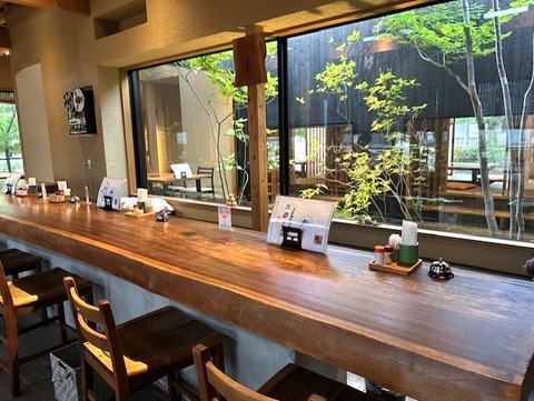 広々とした店内、中庭を眺めながらのカウンター席も♪