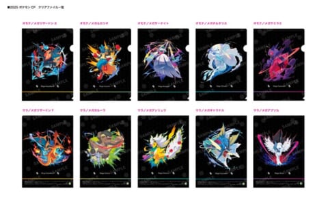 オリジナルA4クリアファイル(全5種): 黒の背景にメガシンカポケモンが大きくあしらわれたクールなデザインです。