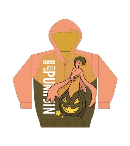 ポケモンずかんNo.0711(セブン‐イレブン)のパンプジンが全面にデザインされたフルグラフィックパーカーです。パンプジンファンには魅力的なグッズとなっています。