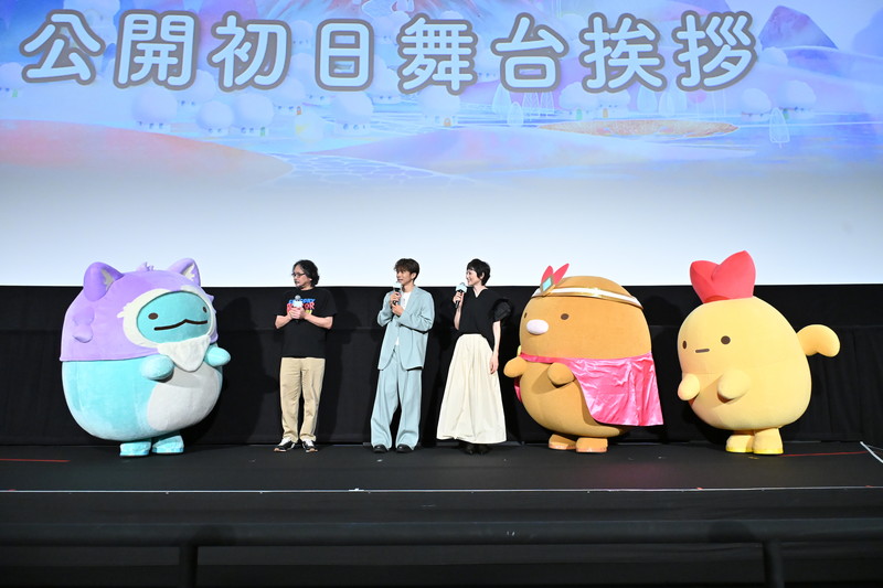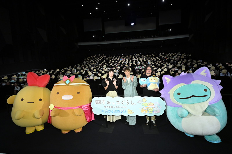劇場版最新作となる『映画 すみっコぐらし 空の王国とふたりのコ』が、10月31日(金)に公開初日を迎えた。本作の公開を記念し、公開初日舞台挨拶が新宿ピカデリーで⾏われ、ナレーションを務める井ノ原快彦、本上まなみ、監督のイワタナオミが登壇。そして、すみっコたちを代表し、とんかつ、えびふらいのしっぽ、とかげが劇中の冒険衣装を身に着けてイベントに駆けつけた。