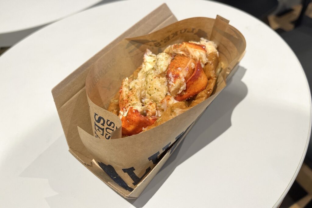 ロブスターが山盛りのロールサンドです。インパクトのある見た目に圧倒されます。パンには発酵バターを使っていて、あっさりしたロブスターとの対比が味わえます。