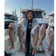 メンバー6人でアベレージ4尾。青もマダイもまあまあ釣れてるが、普段大抵良く釣るメンバーが渋くて、釣り座の落差が凄い。釣り座を交代している仲間たちもいた。貸し切りだと竿2本出せるし、そういう事が出来る。
